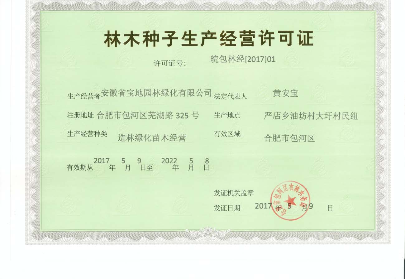 祝贺宝地园林获得园林局颁发的林木种子经营生产许可证!
