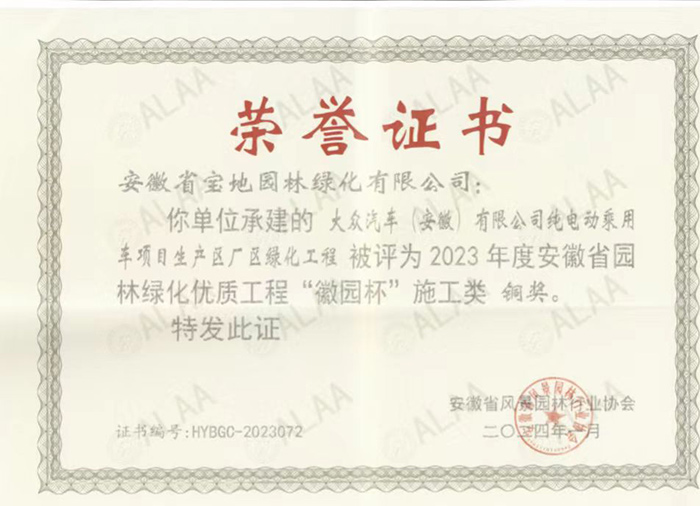 祝贺我公司在大众汽车(安徽)有限公司施工项目获得的省一级奖项